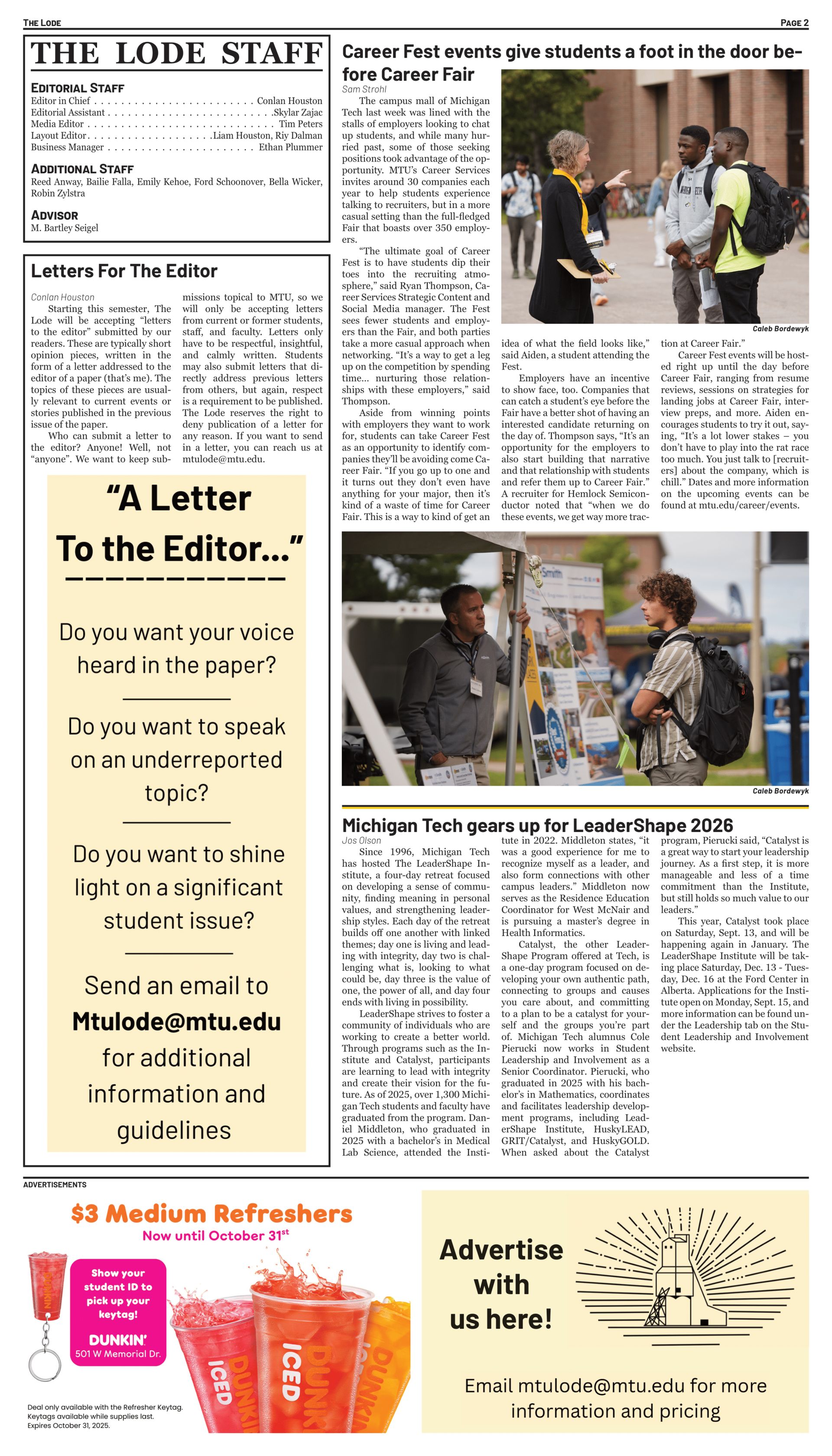 Hiya Huskies! Dropping by for week four is another installment of Lode weekly! This week features information on Career Fair, national voter registration, reviews of recently completed campus events, and much more!