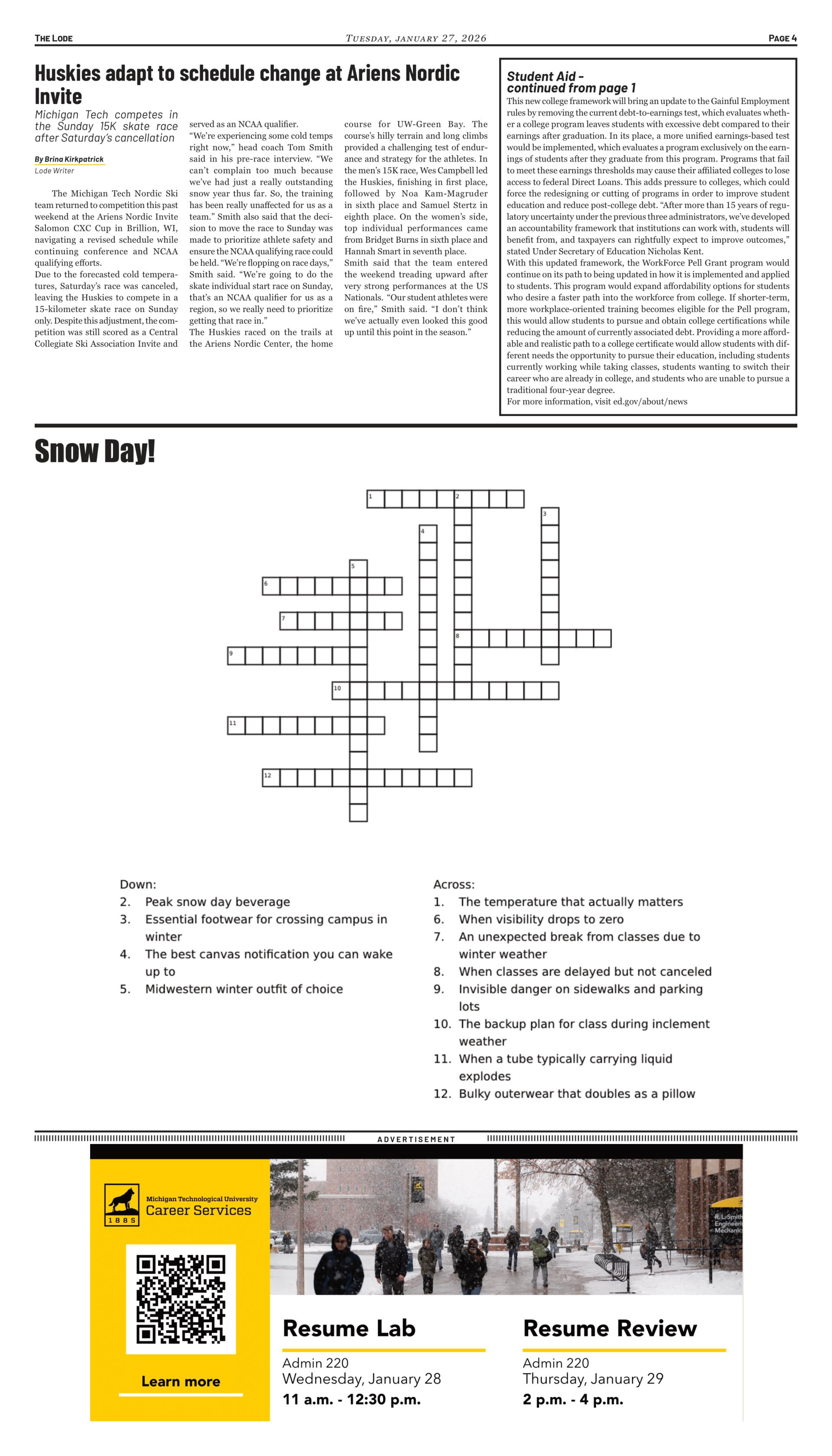Hiya Huskies, dropping by for week four is this week’s installment of Lode Weekly! This week features details on the new student aid framework from the Department of Education, the upcoming academic minor fair, U.S. colleges bringing back standardized test scores, and much more!