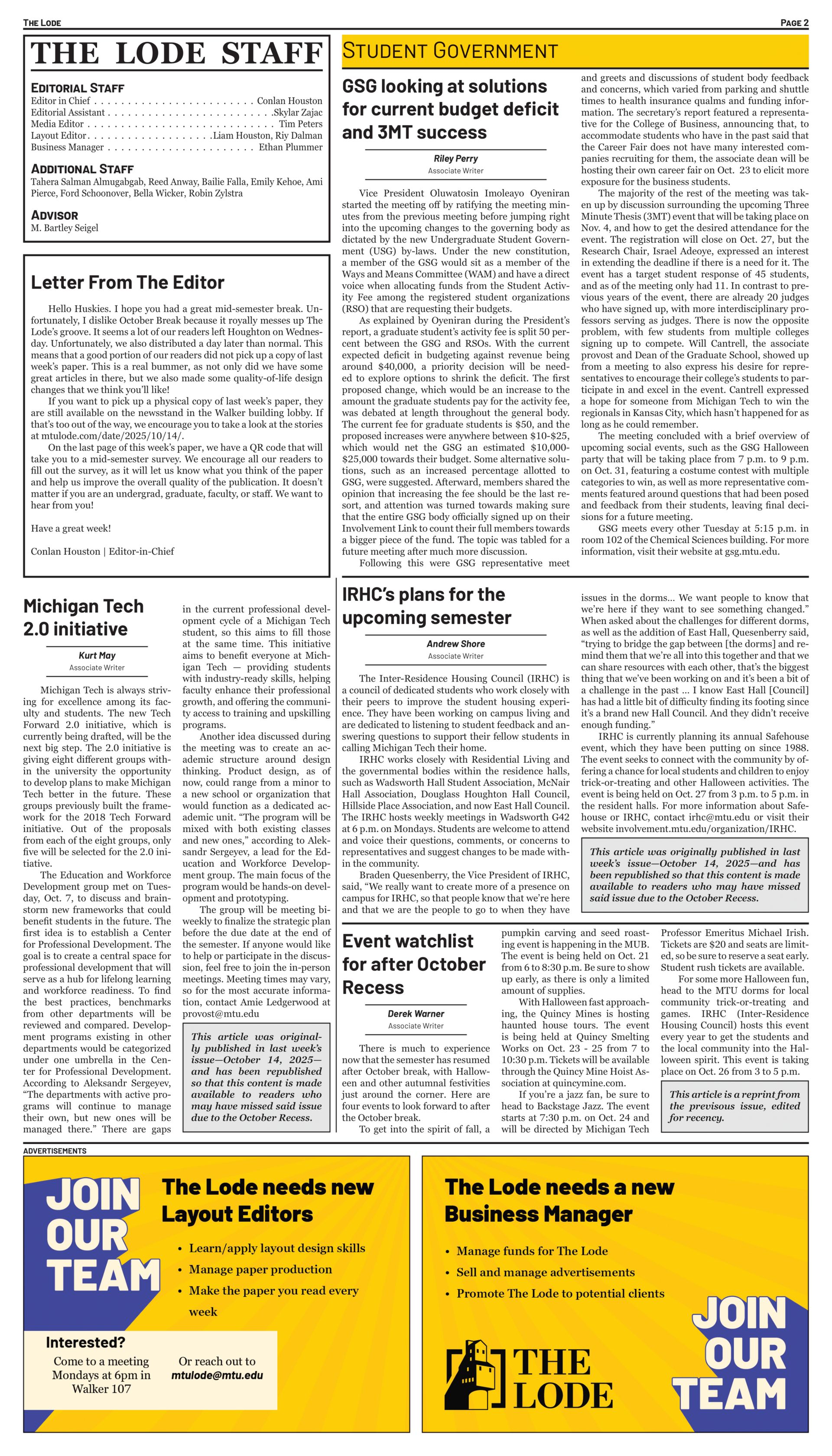 Welcome back after break Huskies! Dropping by your inbox for week nine is this week’s installment of Lode Weekly! This week features information on the break bus, the Michigan Tech 2.0 initiative, zamboni rides, and much more!