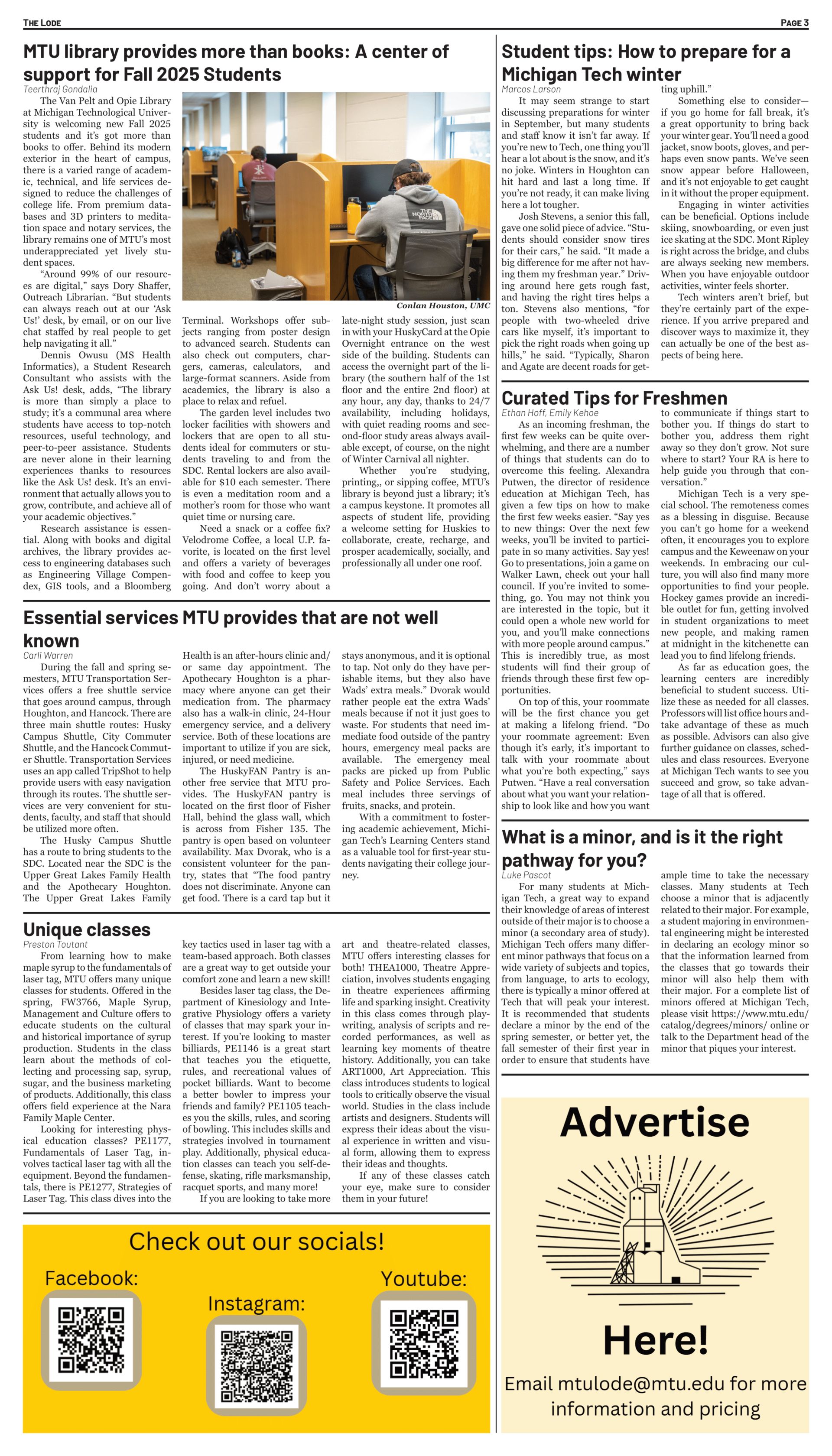 Welcome back to Tech Huskies! We here at the Lode hope you all enjoyed your summer and are ready to hit the ground running this semester! This week features information on K-day, the importance of learning centers, the Campus Master Plan, and many more tips for our incoming freshmen!